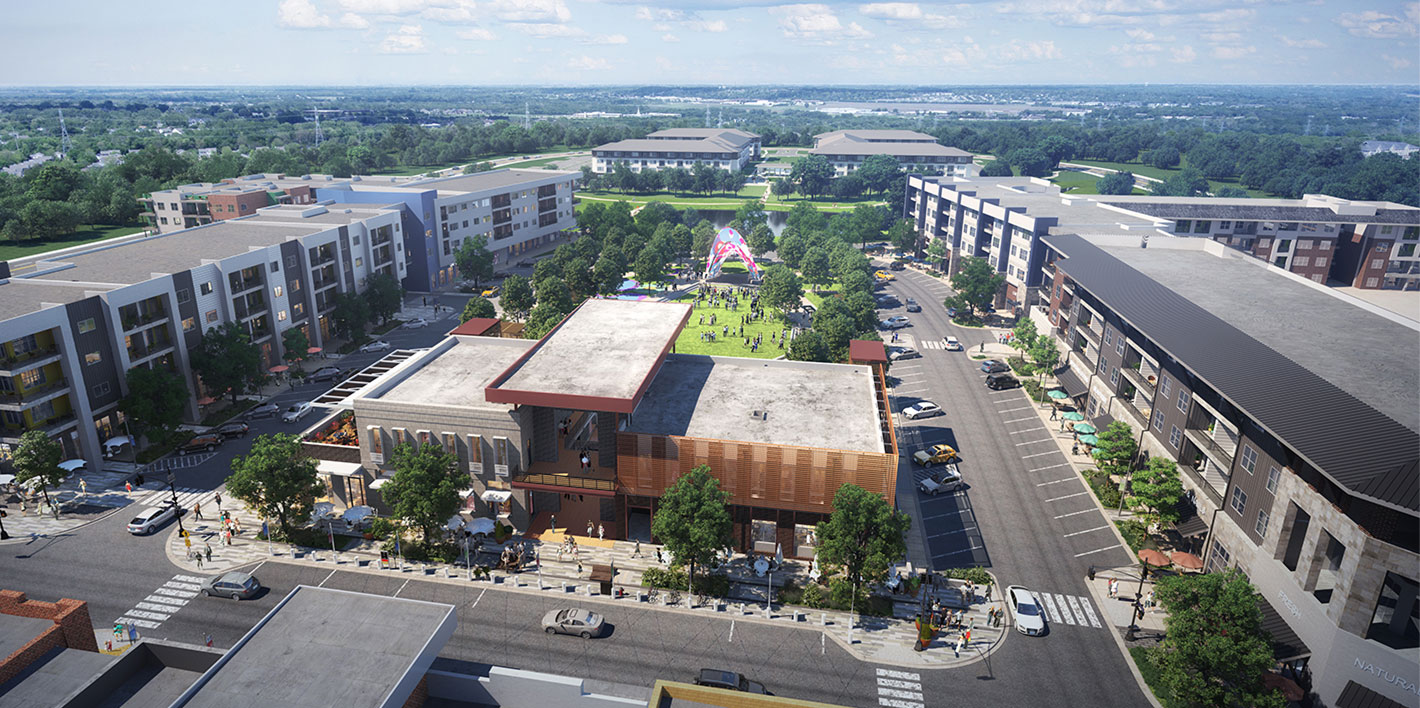 The urban core of commercial, residential, and retail mix, woven with sustainable parkland and water features, surrounds a 1.5-acre village green that is a magnet for meet-ups, family gatherings, festivals, outdoor concerts, and more.